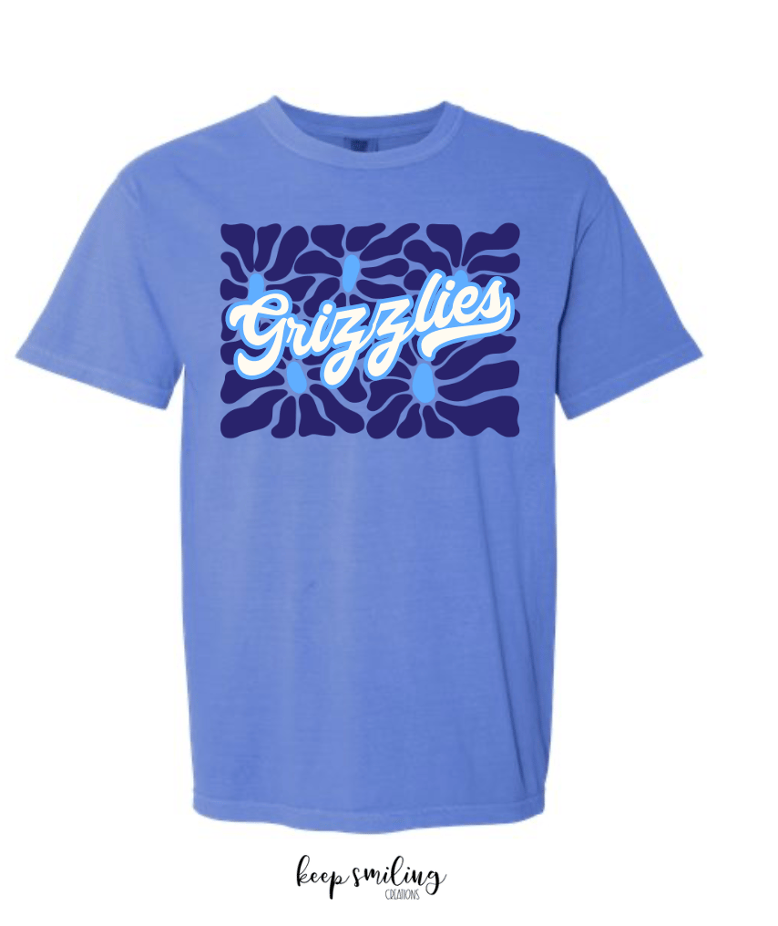 Floral Scouts tee in Comfort Colors Cornflower. This tee is a new fave! Unisex sizing, more of a heavier and oversized fit. This color is only available in adult sizing, however, something similar can be substituted for youth sizing. Just shoot me a message!