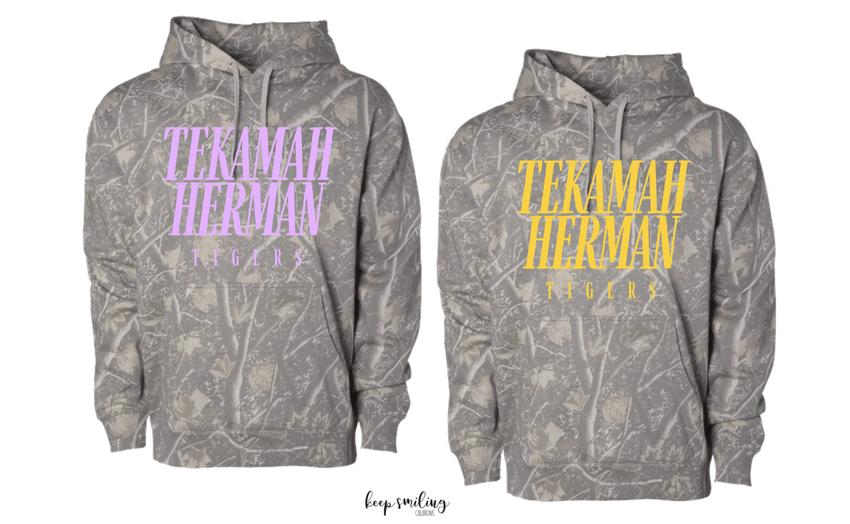 Unisex camo heavyweight super cozy hoodie. 10 oz, 70/30 ringspun cotton. Available in two colors!